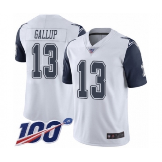 Men's Dallas Cowboys #13 Michael Gallup Limited White Rush Vapor Untouchable 100th Season Football Jersey