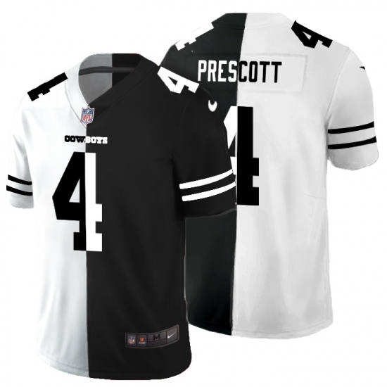 Men's Dallas Cowboys #4 Dak Prescott Black White Limited Split Fashion Football Jersey