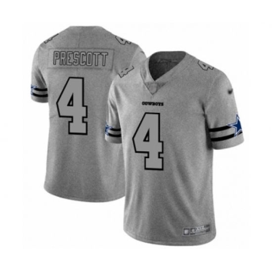 >Men's Dallas Cowboys #4 Dak Prescott Gray Team Logo Gridiron Limited Football Jersey
