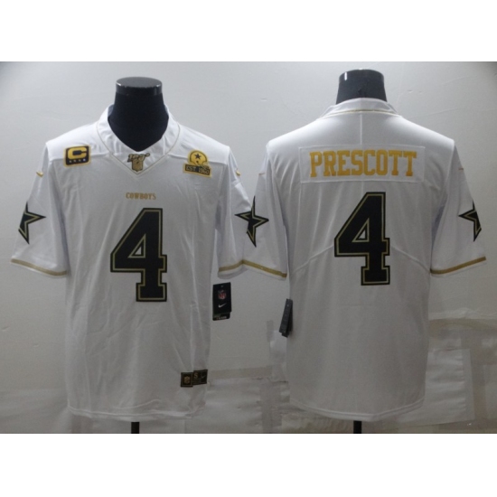 Men's Dallas Cowboys #4 Dak Prescott White Gold Limited Player Jersey