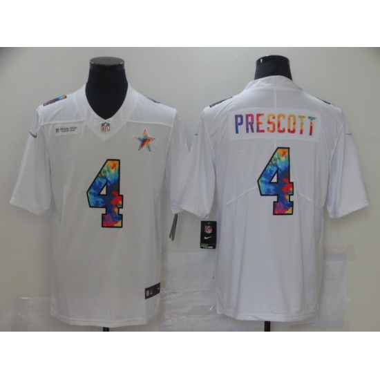 Men's Dallas Cowboys #4 Dak Prescott White Rainbow Version Nike Limited Jersey