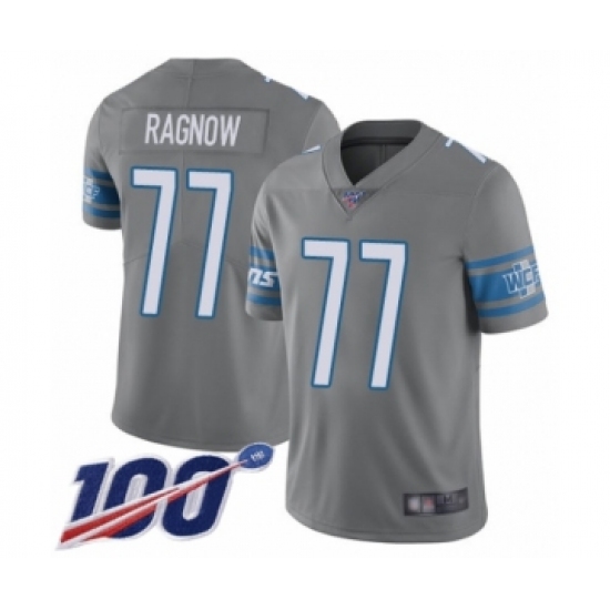 >Men's Detroit Lions #77 Frank Ragnow Limited Steel Rush Vapor Untouchable 100th Season Football Jersey
