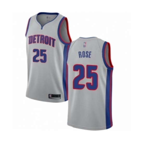 Men's Detroit Pistons #25 Derrick Rose Authentic Silver Basketball Jersey Statement Edition