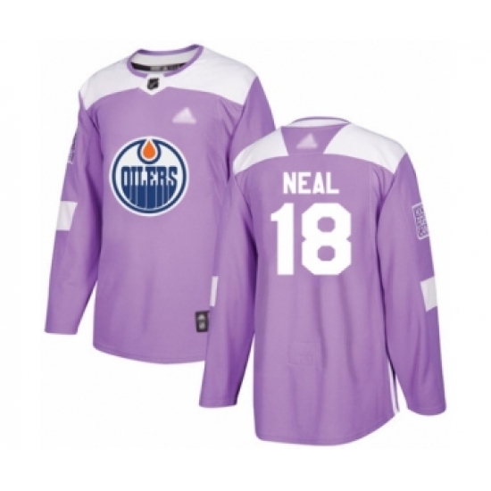 >Men's Edmonton Oilers #18 James Neal Authentic Purple Fights Cancer Practice Hockey Jersey