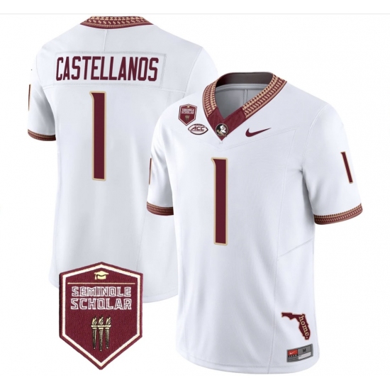 >Men's Florida State Seminoles #1 Castellanos White Limited NCAA Jersey