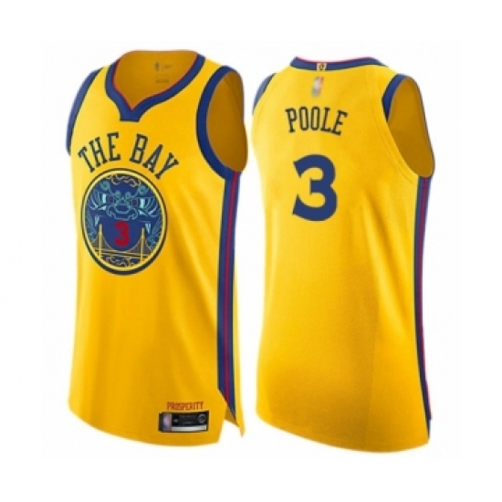 >Men's Golden State Warriors #3 Jordan Poole Authentic Gold Basketball Jersey - City Edition