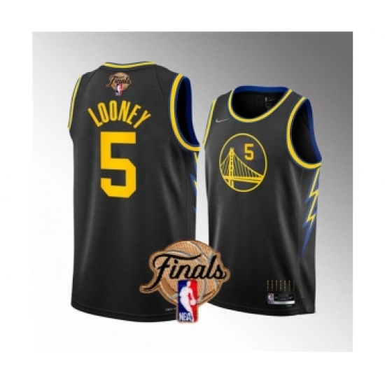 >Men's Golden State Warriors #5 Kevon Looney Black 2022 Finals Stitched Jersey