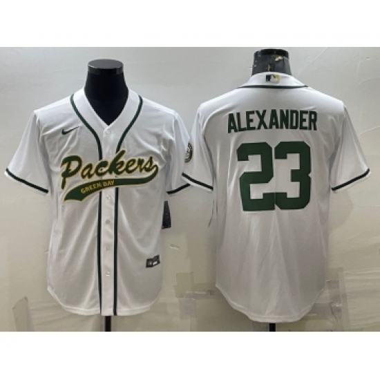 >Men's Green Bay Packers #23 Jaire Alexander White With Patch Cool Base Stitched Baseball Jersey