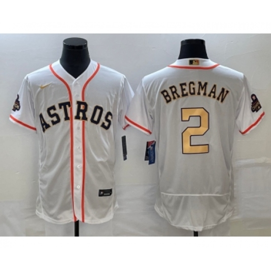 Men's Houston Astros #2 Alex Bregman White 2022 World Series Champions Flex Base Stitched Baseball Jersey