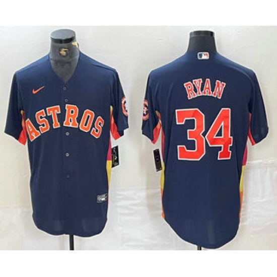 Men's Houston Astros #34 Nolan Ryan Navy Blue Team Logo Stitched MLB Cool Base Nike Jersey