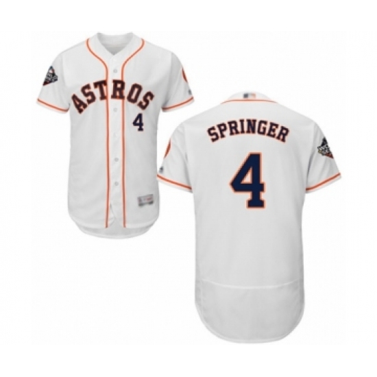 Men's Houston Astros #4 George Springer White Home Flex Base Authentic Collection 2019 World Series Bound Baseball Jersey