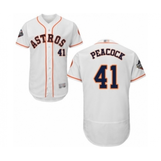 Men's Houston Astros #41 Brad Peacock White Home Flex Base Authentic Collection 2019 World Series Bound Baseball Jersey