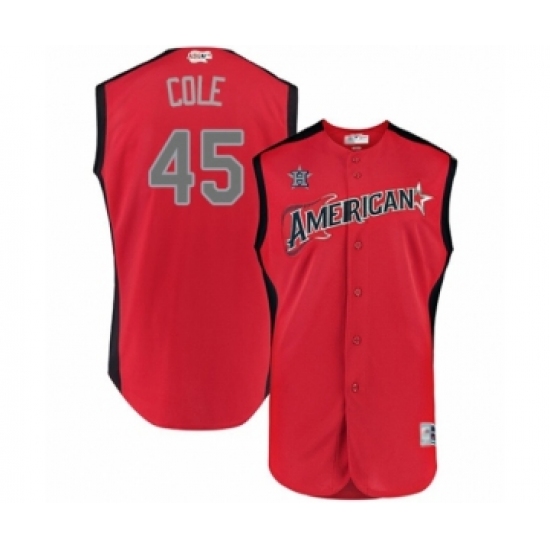 Men's Houston Astros #45 Gerrit Cole Authentic Red American League 2019 Baseball All-Star Jersey