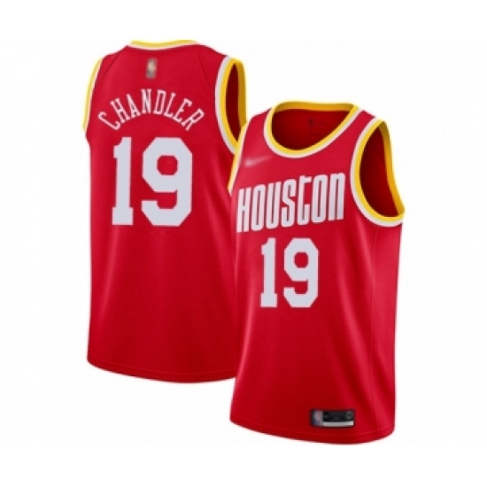 >Men's Houston Rockets #19 Tyson Chandler Authentic Red Hardwood Classics Finished Basketball Jersey