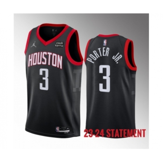 Men's Houston Rockets #3 Kevin Porter Jr. Black 2023 Statement Edition Stitched Basketball Jersey