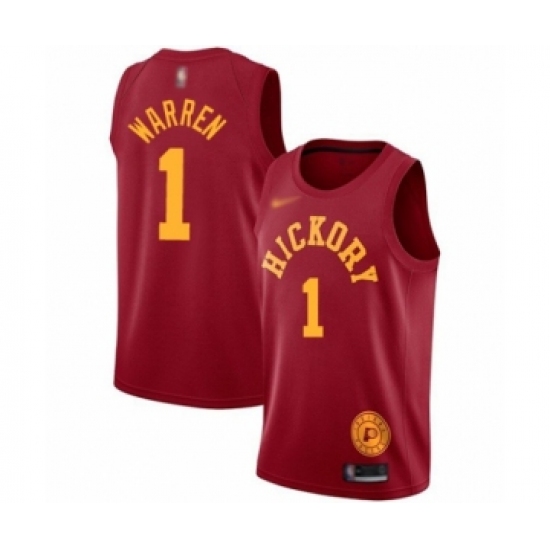 >Men's Indiana Pacers #1 T.J. Warren Authentic Red Hardwood Classics Basketball Jersey