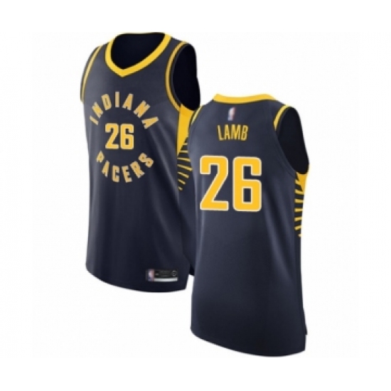 >Men's Indiana Pacers #26 Jeremy Lamb Authentic Navy Blue Basketball Jersey - Icon Edition