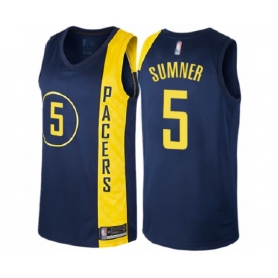 >Men's Indiana Pacers #5 Edmond Sumner Authentic Navy Blue Basketball Jersey - City Edition