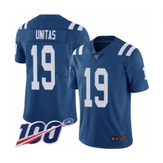 Men's Indianapolis Colts #19 Johnny Unitas Royal Blue Team Color Vapor Untouchable Limited Player 100th Season Football Jersey