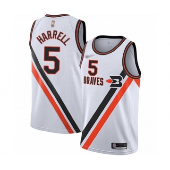 >Men's Los Angeles Clippers #5 Montrezl Harrell Authentic White Hardwood Classics Finished Basketball Jersey