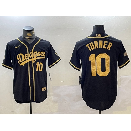 >Men's Los Angeles Dodgers #10 Justin Turner Black Cool Base Stitched MLB Jersey