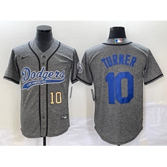 Men's Los Angeles Dodgers #10 Justin Turner Number Grey Gridiron Cool Base Stitched Baseball Jersey