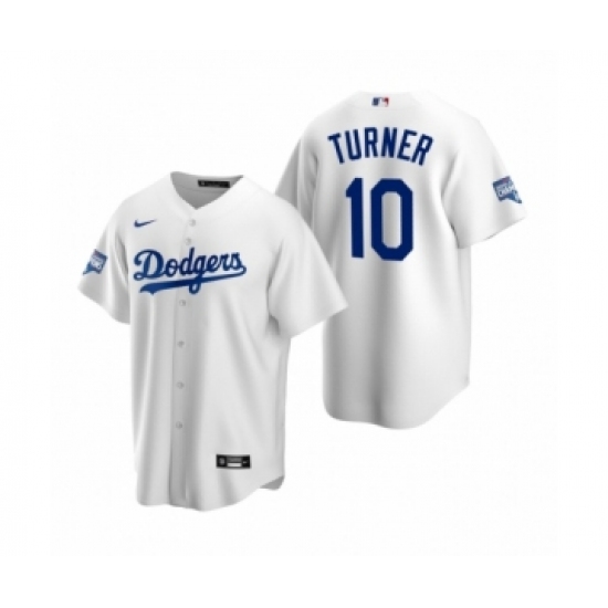 Men's Los Angeles Dodgers #10 Justin Turner White 2020 World Series Champions Replica Jersey