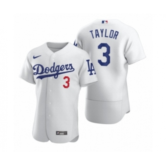 >Men's Los Angeles Dodgers #3 Chris Taylor Nike White 2020 Authentic Jersey