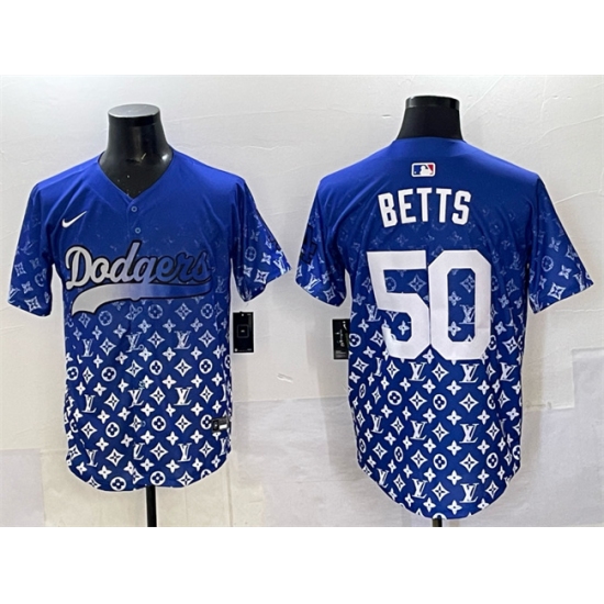 >Men's Los Angeles Dodgers #50 Mookie Betts Blue Limited Stitched Baseball Jersey