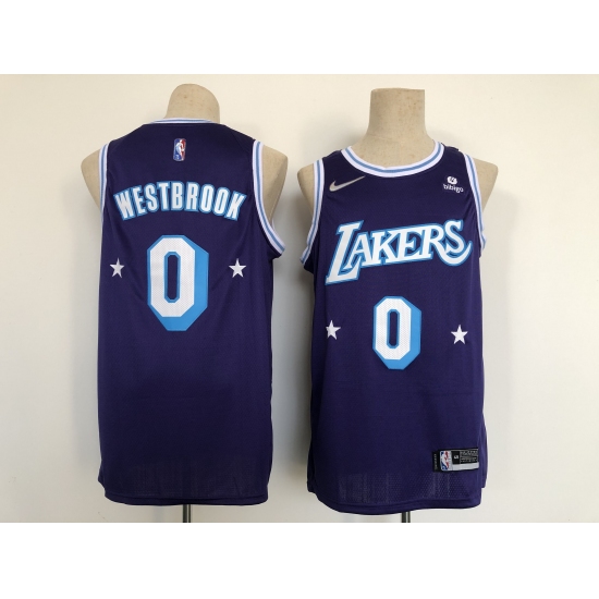 Men's Los Angeles Lakers #0 Russell Westbrook Nike Purple 2021-22 Swingman City Jersey