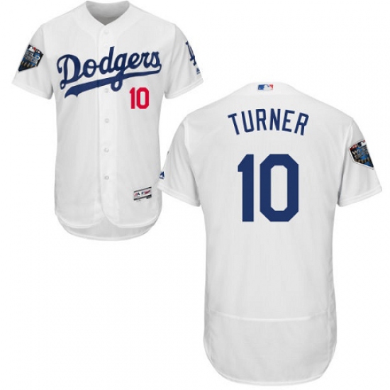 Men's Majestic Los Angeles Dodgers #10 Justin Turner White Home Flex Base Authentic Collection 2018 World Series MLB Jersey