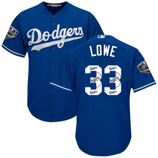 >Men's Majestic Los Angeles Dodgers #33 Mark Lowe Authentic Royal Blue Team Logo Fashion Cool Base 2018 World Series MLB Jersey