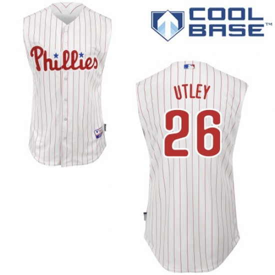 Men's Majestic Philadelphia Phillies #26 Chase Utley Replica White/Red Strip Vest Style MLB Jersey