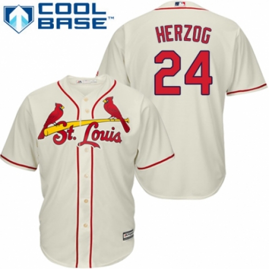 Men's Majestic St. Louis Cardinals #24 Whitey Herzog Replica Cream Alternate Cool Base MLB Jersey