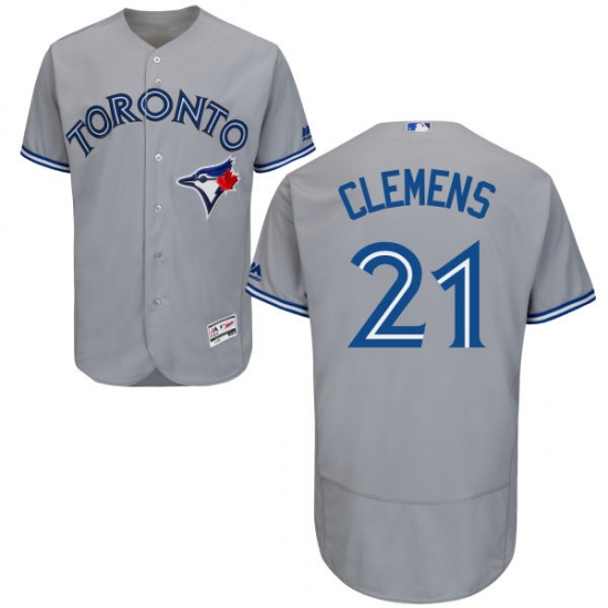 Men's Majestic Toronto Blue Jays #21 Roger Clemens Grey Road Flex Base Authentic Collection MLB Jersey