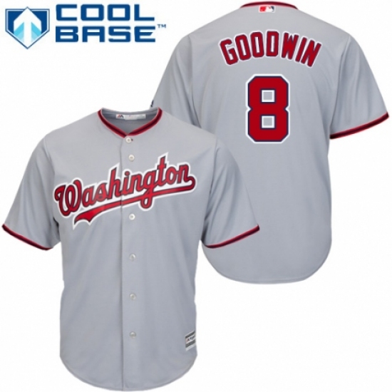 >Men's Majestic Washington Nationals #8 Brian Goodwin Replica Grey Road Cool Base MLB Jersey