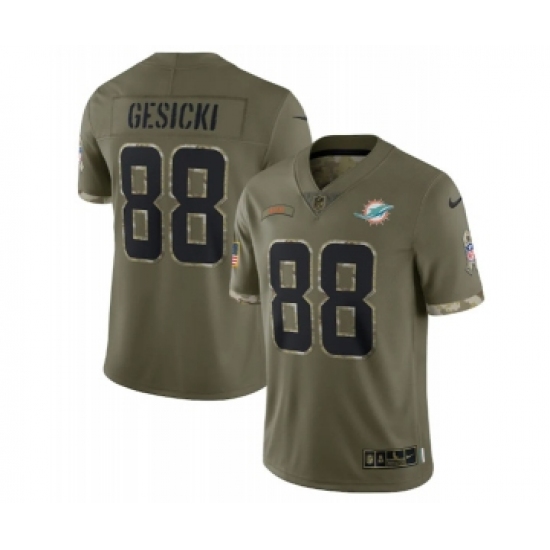 >Men's Miami Dolphins #88 Mike Gesicki 2022 Olive Salute To Service Limited Stitched Jersey
