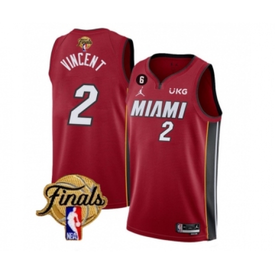 Men's Miami Heat #2 Gabe Vincent Red 2023 Finals Statement Edition With NO.6 Stitched Basketball Jersey