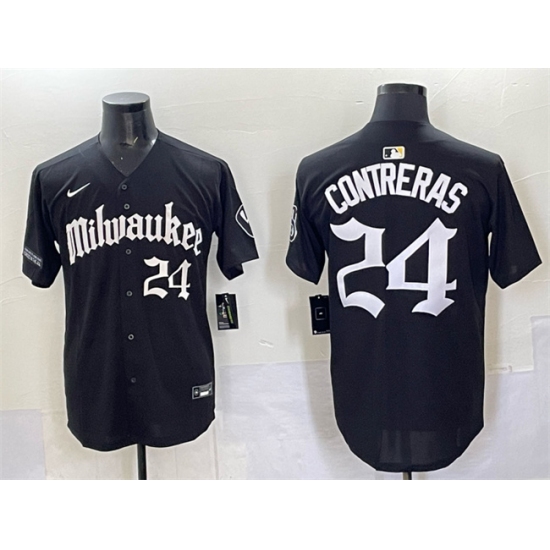 >Men's Milwaukee Brewers #24 William Contreras Black 'Gothic 414 Shadows Edition' Vapor Premier Limited Stitched Jersey