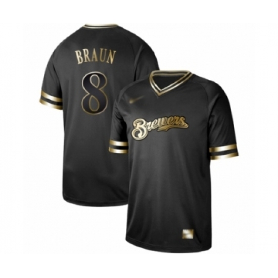 Men's Milwaukee Brewers #8 Ryan Braun Authentic Black Gold Fashion Baseball Jersey