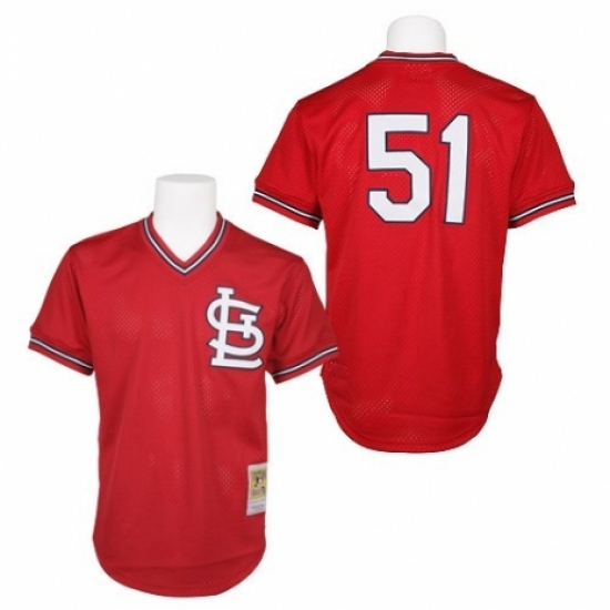 >Men's Mitchell and Ness 1985 St. Louis Cardinals #51 Willie McGee Replica Red Throwback MLB Jersey