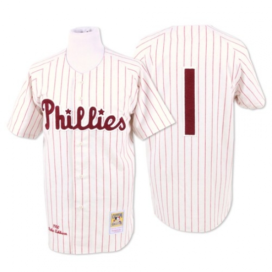Men's Mitchell and Ness Philadelphia Phillies #1 Richie Ashburn Replica White/Red Strip Throwback MLB Jersey
