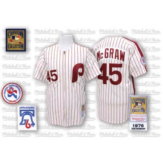 Men's Mitchell and Ness Philadelphia Phillies #45 Tug McGraw Authentic White/Red Strip Throwback MLB Jersey