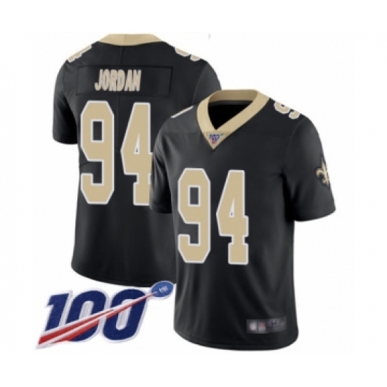 >Men's New Orleans Saints #94 Cameron Jordan Black Team Color Vapor Untouchable Limited Player 100th Season Football Jersey