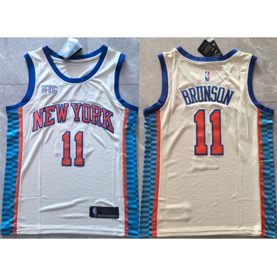 Men's New Yok Knicks #11 Jalen Brunson White 2024-25 City Edition Stitched Basketball Jersey