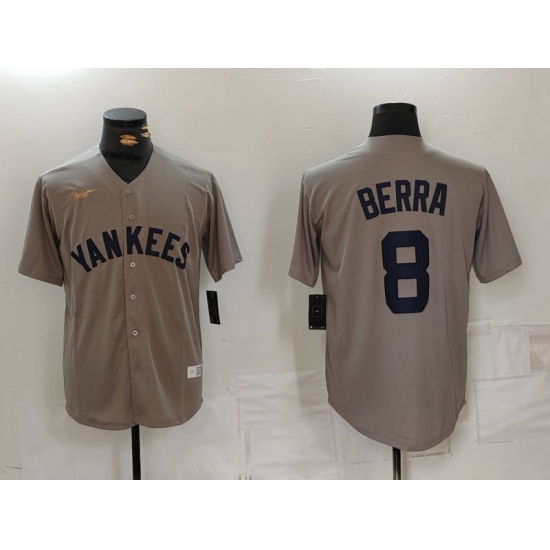 Men's New York Yankees #8 Yogi Berra Grey Throwback Stitched Cool Base Nike Jersey