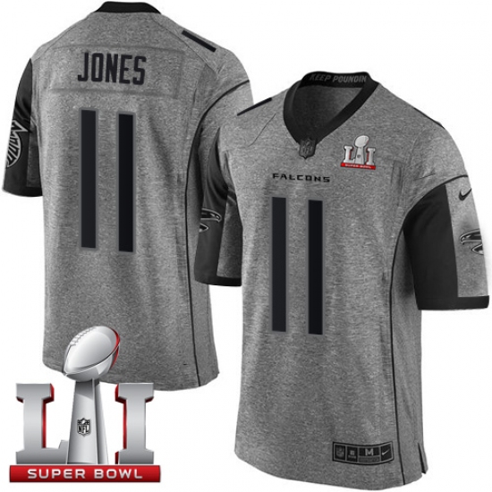 Home>NFL>Atlanta Falcons>Julio Jones>Men's Nike Atlanta Falcons #11 Julio Jones Limited Gray Gridiron Super Bowl LI 51 NFL Jersey