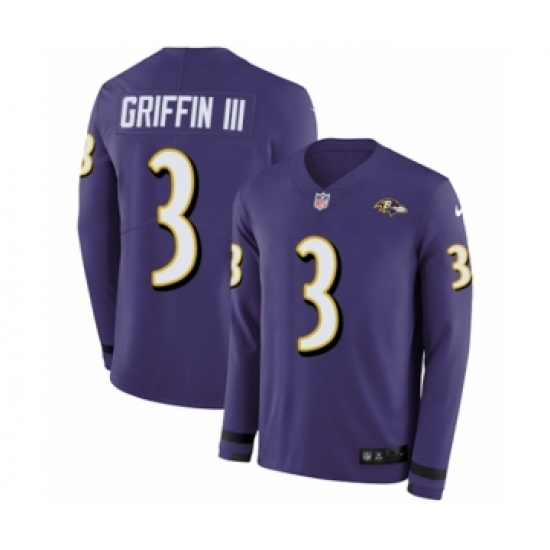Men's Nike Baltimore Ravens #3 Robert Griffin III Limited Purple Therma Long Sleeve NFL Jersey