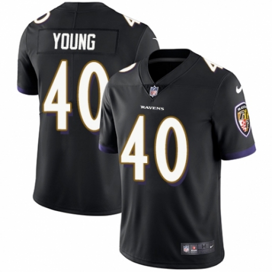 >Men's Nike Baltimore Ravens #40 Kenny Young Black Alternate Vapor Untouchable Limited Player NFL Jersey
