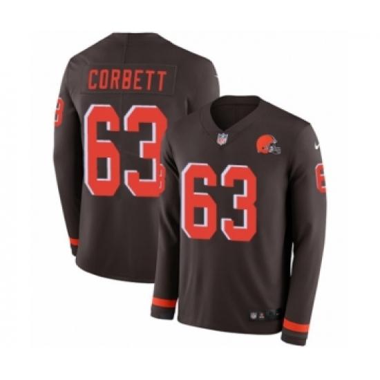 >Men's Nike Cleveland Browns #63 Austin Corbett Limited Brown Therma Long Sleeve NFL Jersey